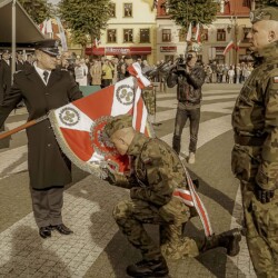 27 października 2023 r. był dla nas szczególnym dniem, ponieważ wzięliśmy udział w uroczystości wręczenia Sztandaru dla 36 MRZEŻYŃSKIEGO DYWIZJONU RAKIETOWEGO OBRONY POWIETRZNEJ im. gen. broni Władysława Andersa. Była to okazja do prezentacji naszych nowych uniformów 2 Korpusu. Nasze wsparcie w uświetnienie uroczystości wzbogaciliśmy w elementy rekonstruktorskie przedstawiając stoisko z uzbrojeniem i wyposażeniem, pojazdy wojskowe z okresu II WŚ. Uhonorowaniem naszej obecności było asystowanie sztandaru – zaszczytu dostąpili Mariusz Korzeń Korzeniewski, Jacek Kabata oraz salwa z 75 mm armaty polowej wz. 1902/26 (prawosławna lub putiłówka z okresu międzywojennego.