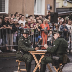 W rekonstrukcji, która rozpoczęła się o godz. 18.00, członkowie naszego Stowarzyszenia wcieli się w obie strony biorące udział w powstańczych zmaganiach – zarówno w oddziały powstańcze, jak i siły niemieckie – prezentując z dużym realizmem dramatyczne realia walk ulicznych w oblężonej Warszawie. Widowisku towarzyszyły efekty pirotechniczne, starannie przygotowane scenografie i oprawa dźwiękowa, które pozwoliły widzom niemal namacalnie poczuć atmosferę wydarzeń sierpnia 1944 roku.