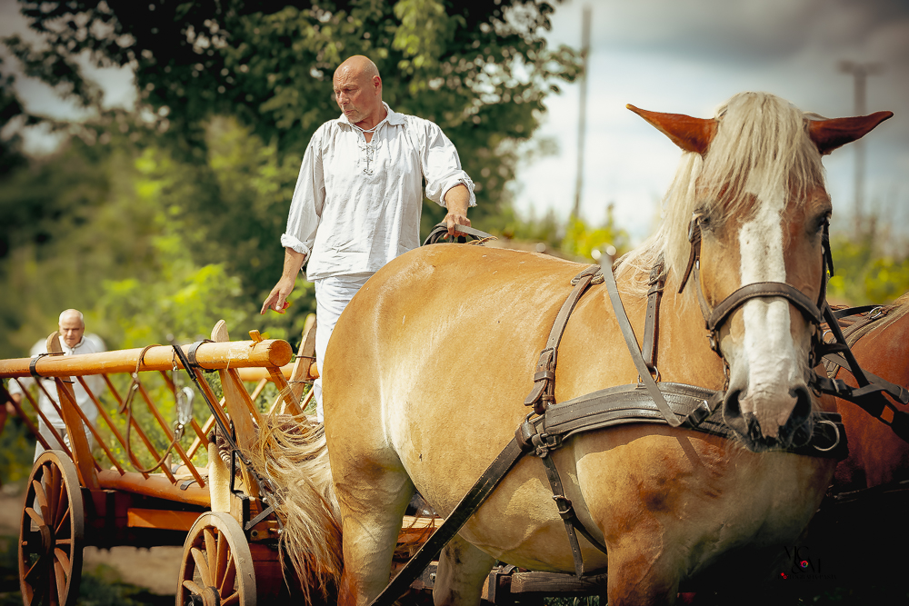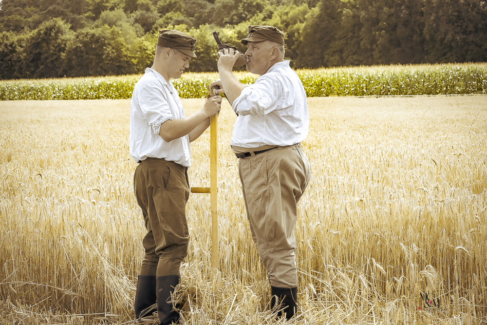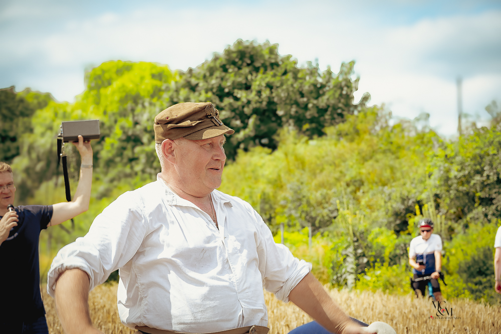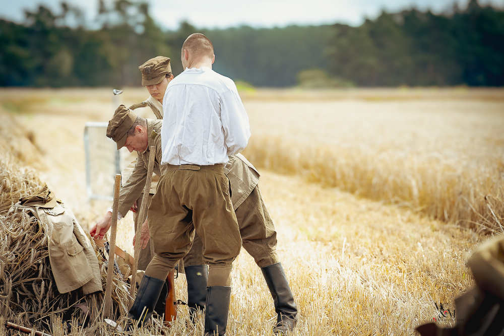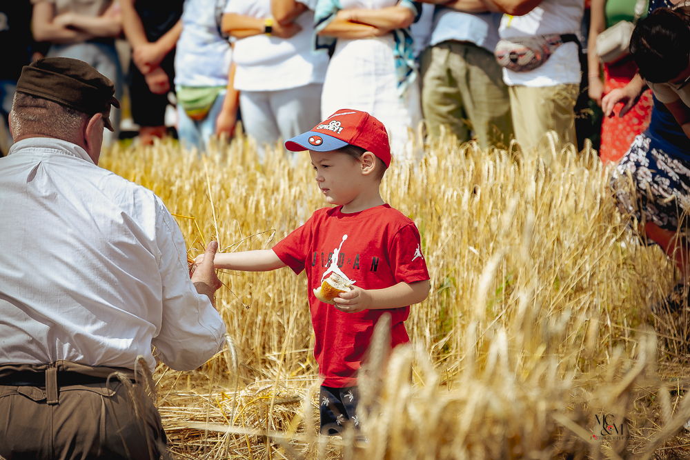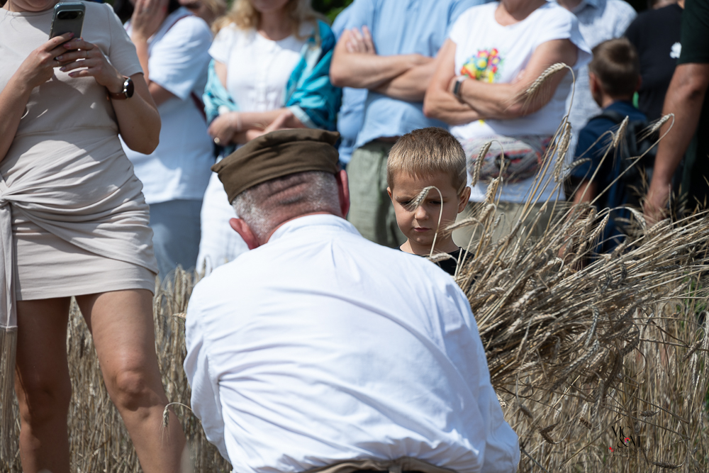 Na muzealnym polu członkowie Stowarzyszenia Rekonstrukcji Historycznej REGA odtworzyli epizody żniwne sprzed ponad 80 lat. Zaprezentowaliśmy tradycyjne prace polowe wykonywane przy użyciu autentycznego sprzętu z epoki, z udziałem rekonstruktorów w historycznych strojach ludowych i wojskowych. Pokazy koszenia kosą i sierpem, wiązania snopów oraz układania ich w mendle przypomniały zwiedzającym trud codziennej pracy rolników w realiach wojennych i w czasie wielkich przemian społecznych.
