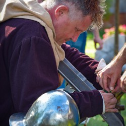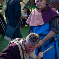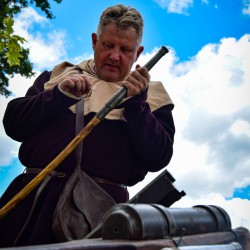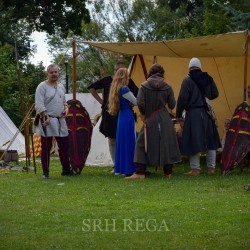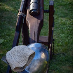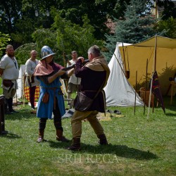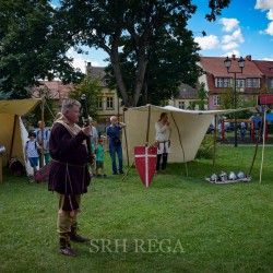 31 lipca już od godzin porannych na Dziedzińcu Trzebiatowski Ośrodek Kultury Pałac w Trzebiatowie rozpoczął się po raz pierwszy TRZEBIATOWSKI JARMARK HISTORYCZNY w którym mieliśmy przyjemność uczestniczyć jako średniowieczni artylerzyści. Nasze co godzinne huczne pokazy artyleryjskie z bombardy, hakownicy i piszczeli (Studio Historyczne Huzar) było słychać w pobliskich osadach ? Klimat średniowiecznego Jarmarku przeniósł się na ulice grodu i Baszty Kaszany za sprawą słonicy Hansken. Pod Basztą Kaszaną rycerz Dawid Mularz (Stowarzyszenie Historyczne Trzebiatów Chąśba) opowiedział legendę jak udało się uratować miasto przed gryficzanami, dzięki „gorącej misie kaszy”. Pokazy życia średniowiecznego obozowiska, uzbrojenia, pokazy walk i artylerii średniowiecznej okraszone opowieściami Michał Januszowic Ostrowski (Mohort) przyciągnęły tłumy zwiedzających. Organizatorem Jarmarku był Trzebiatowski Ośrodek Kultury Pałac i Trzebiatowskie Towarzystwo Kultury.