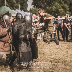 7 sierpnia 2021 r. uczestniczyliśmy w VIII Biesiadzie Komorowskiej, która zaskoczyła przybyszów i samych uczestników swoim rozmachem wraz z masą atrakcji z tajemnicami przeszłości od średniowiecza, aż do teraźniejszości. Po rocznej przerwie w jednym z najciekawszych miejsc na Pomorzu, na gości czekały same atrakcje w tym prezentacje i warsztaty historyczne, widowiskowe: walki rycerskie, artyleria średniowieczna, pojazdy wojskowe z okresu II WŚ, pokazy warzenia soli, wędzenia ryb, muzyka dawna i zabawy plebejskie, tor łuczniczy. Przygotowaliśmy dla zwiedzających dioramę z umundurowaniem, wyposażeniem i uzbrojeniem oddziałów ZOMO, Milicji Obywatelskiej, nie zapominając że celem Biesiady była kwesta na odnowę zabytkowego XV-wiecznego kościoła w Komorowie w której czynnie wzięliśmy udział. Natomiast nasz dzielny patrol tradycyjnie dbał o ład i porządek